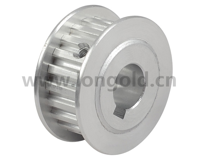 同步帶輪一般由鋼,鋁合金,鑄鐵,黃銅,等材料制造。內(nèi)孔有圓孔,D形孔,錐形孔等形式。表面處理有本色氧化,發(fā)黑,鍍鋅,鍍彩鋅,高頻淬火等處理。精度等級依客戶要求而定。