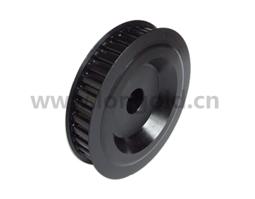 同步帶輪一般由鋼,鋁合金,鑄鐵,黃銅,等材料制造。內孔有圓孔,D形孔,錐形孔等形式。表面處理有本色氧化,發黑,鍍鋅,鍍彩鋅,高頻淬火等處理。精度等級依客戶要求而定。