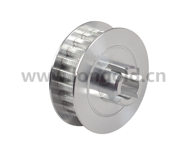 同步帶輪一般由鋼,鋁合金,鑄鐵,黃銅,等材料制造。內孔有圓孔,D形孔,錐形孔等形式。表面處理有本色氧化,發黑,鍍鋅,鍍彩鋅,高頻淬火等處理。精度等級依客戶要求而定。