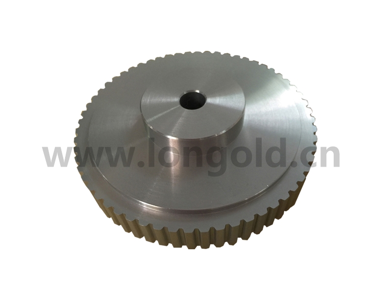同步帶輪一般由鋼,鋁合金,鑄鐵,黃銅,等材料制造。內孔有圓孔,D形孔,錐形孔等形式。表面處理有本色氧化,發黑,鍍鋅,鍍彩鋅,高頻淬火等處理。精度等級依客戶要求而定。