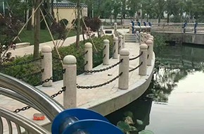 塑鋼防護(hù)鏈防銹耐老化的特性使其能夠在潮濕、含鹽的環(huán)境中長期使用,且其具備足夠的強(qiáng)度,所以在江河湖泊或者道路的危險(xiǎn)處常有使用,搭配各種顏色的搭配,可以很好的起到防護(hù)和警示的作用。