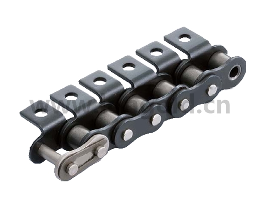 在鏈條單側上下面都帶有螺孔附件的形式。           在鏈條兩側上下面都帶有螺孔附件的形式。             鏈條單側銷軸的延長形式。
