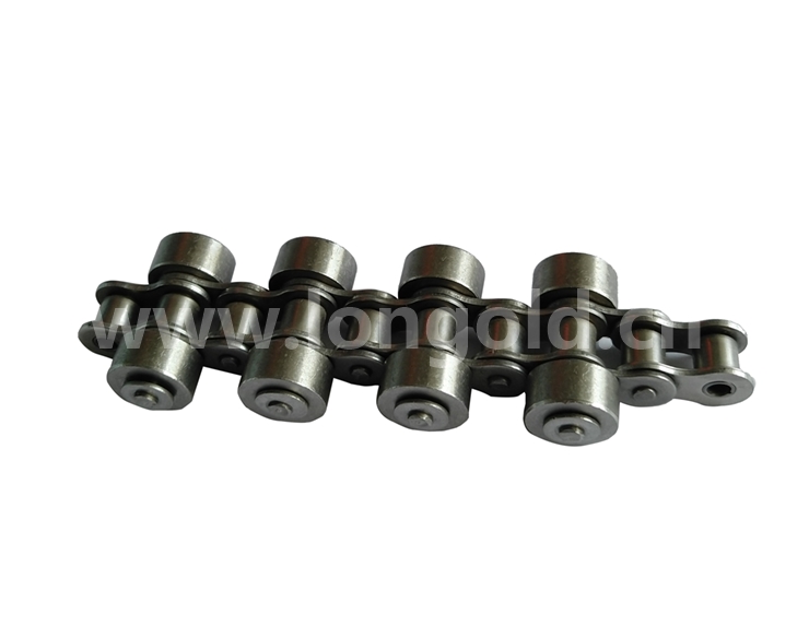 不銹鋼小型輸送鏈的銷軸延長,在銷軸延長部分安裝可自由旋轉的側置滾子。鏈條本體和鏈條本體的滾子都為不銹鋼制,具有耐腐蝕性。