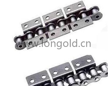 在鏈條單側上下面都帶有螺孔附件的形式。           在鏈條兩側上下面都帶有螺孔附件的形式。             鏈條單側銷軸的延長形式。