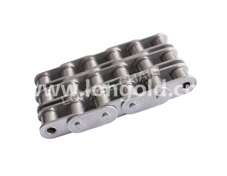 將B系列傳動滾子鏈條的鏈板由"∞"字板改為直板形,直接將工件承載于鏈板之上進(jìn)行輸送的鏈條。鏈輪可直接使用標(biāo)準(zhǔn)B系列鏈輪。根據(jù)排數(shù)不同,有單排,雙排,三排之分,客戶可根據(jù)實(shí)際需要訂購。