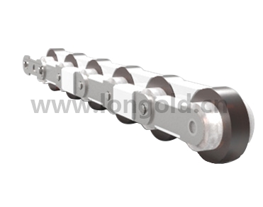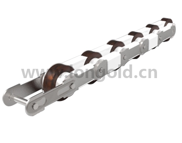 設(shè)置淺灰色的工程塑料制蓋罩,大口徑滾子和大口徑滾子之間或小口徑滾子和小口徑滾子之間的間隙被覆蓋完全,防止螺栓、螺母等嵌入或落下。SS規(guī)格的鏈條本體采用不銹鋼材質(zhì),滾子為工程塑料材質(zhì),具有耐腐蝕性。
