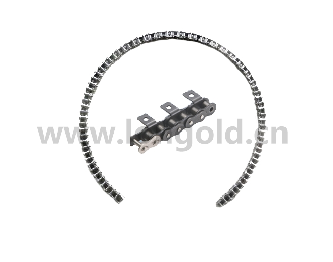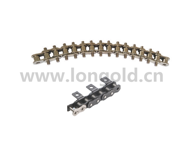 在鏈條單側上下面都帶有螺孔附件的形式。           在鏈條兩側上下面都帶有螺孔附件的形式。             鏈條單側銷軸的延長形式。