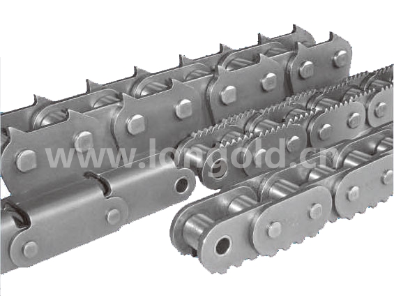 采用ANSI標準或者ISO標準滾子鏈,并與鏈輪嚙合傳動,鏈板所帶的尖角用于夾持木材輸送,最高傳送速度可達到380m/min,主要應用于木材加工生產線上的精確剖切設備。