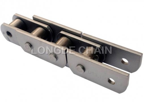以輸送鏈為基礎,鏈條的單側或者兩側帶折彎耳板附件的鏈條。附件的尺寸為非標尺寸,也可根據客戶需求定制鏈條本體和鏈條附件形式以及附件尺寸。