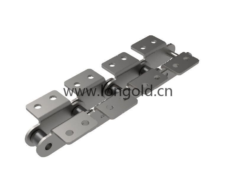 ANSI標(biāo)準(zhǔn)滾子鏈條的節(jié)距增加一倍,其他尺寸不變的鏈條。鏈條執(zhí)行ISO標(biāo)準(zhǔn),鏈條兩側(cè)帶折彎板附件,附板上帶有1個或者2個孔,附件表示為:K1和K2。